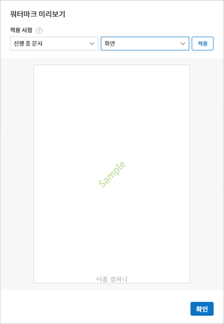 적용 시점에 따라 표시되는 워터마크를 미리보기할 수 있습니다.