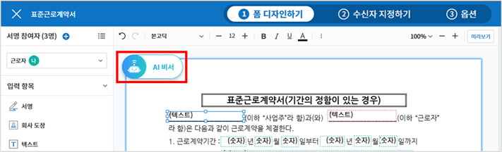 💡 AI 비서를 사용하면, AI가 문서를 자동 분석해 입력 항목의 위치와 유형을 자동으로 설정 및 배치해 줍니다.